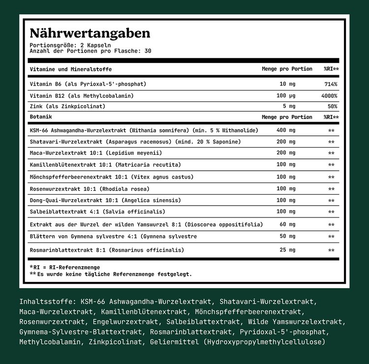 Helps balance stress hormones, easing PMS and menopausal symptoms**