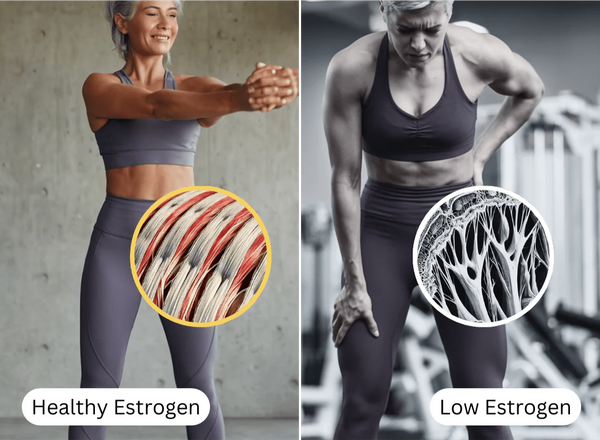 Low estrogen in women aged 40-75+ disrupts collagen production – the protein that gives your tendons strength and elasticity. Your hip tendons become weaker and stiffer... causing that deep, radiating ache you feel.
